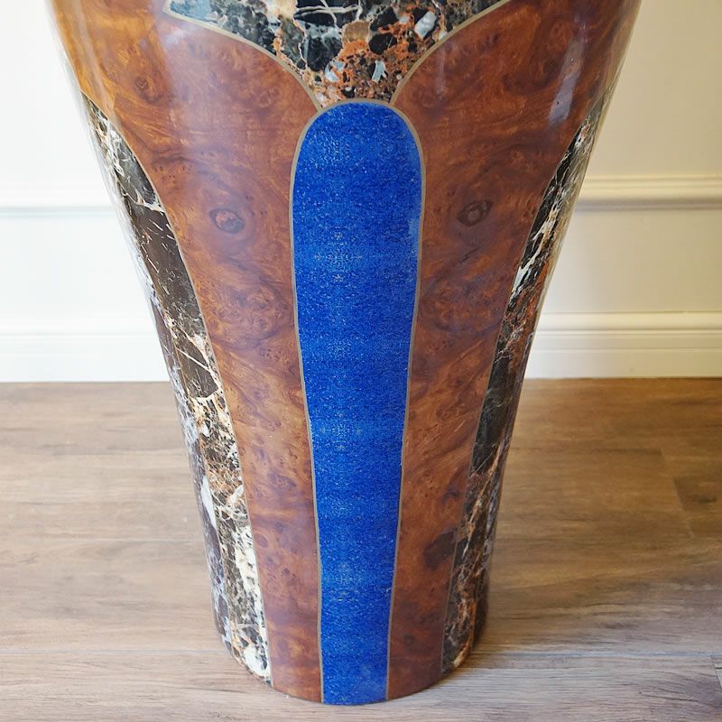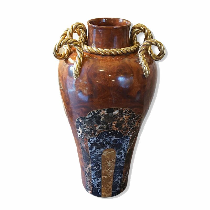 【コメント】イタリアは、陶器ブランド Marioni社 マリオー二の飾り大花瓶・オブジェです。高級ホテルのエントランスやロビーに置かれる場合が多い、気品とエレガントであり、圧倒される大きさの陶器の質感、現在はこの大きさの花瓶はマリオー二でも制作していない希少品の花瓶です。木の質感と大理石のプリントを施しています。ヴィンテージ商品になります。