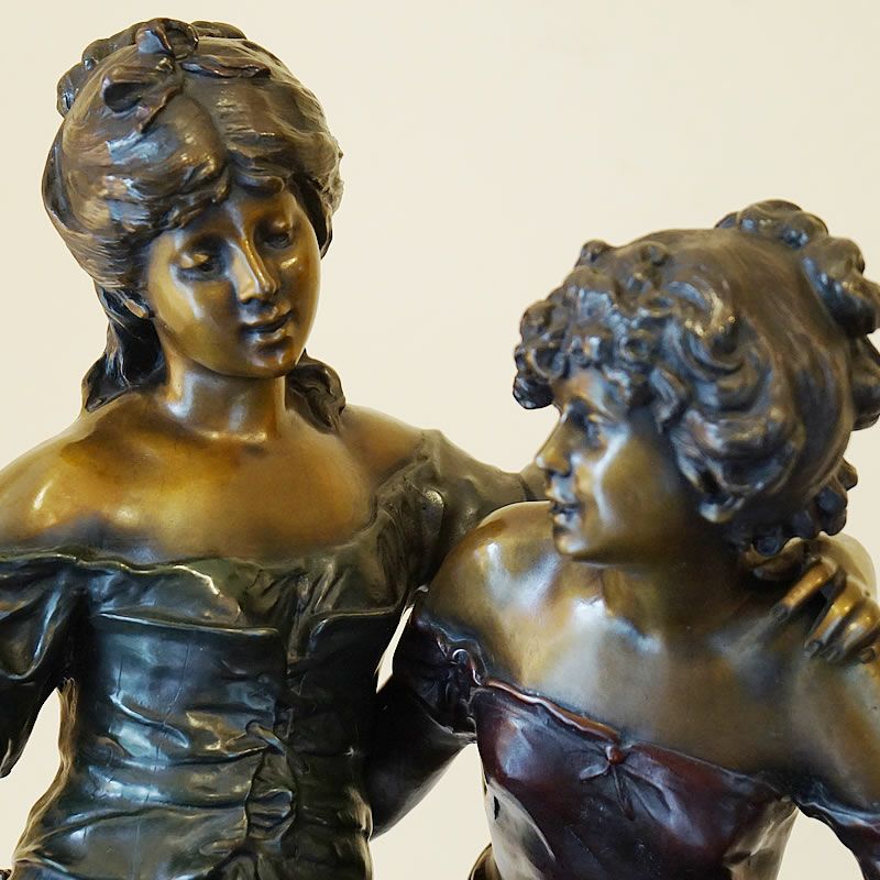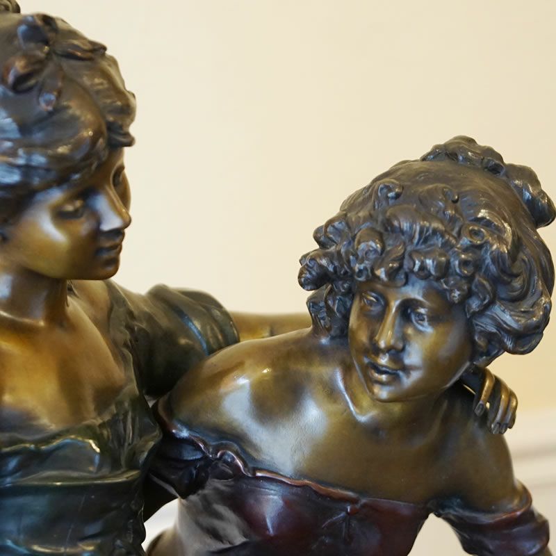 ヴィンテージで暮らしを豊かに楽しく!| アンティーク ブロンズ像 置物 Auguste Moreau オーギュスト モロー作「ふたりの少女 花摘み」オブジェ 大理石