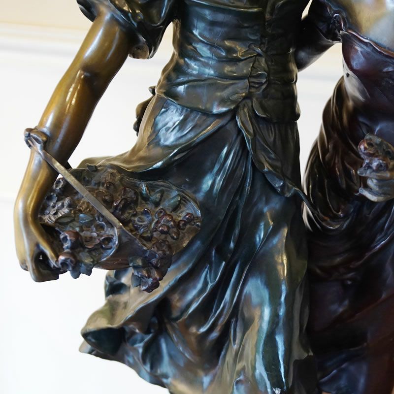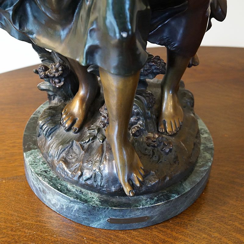3. アンティーク ブロンズ像 置物 Auguste Moreau オーギュスト モロー作「ふたりの少女 花摘み」オブジェ 大理石