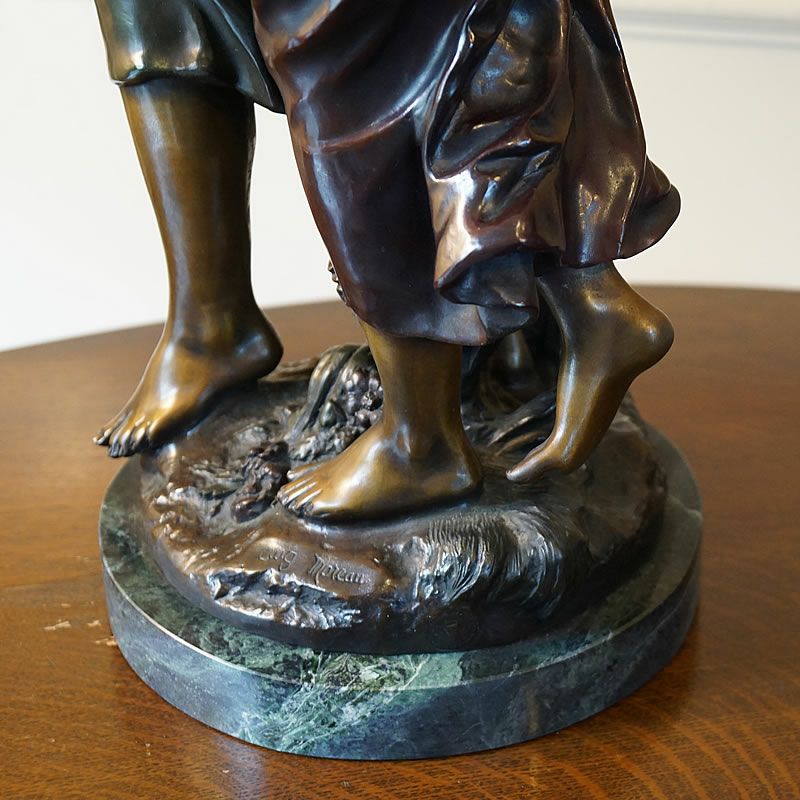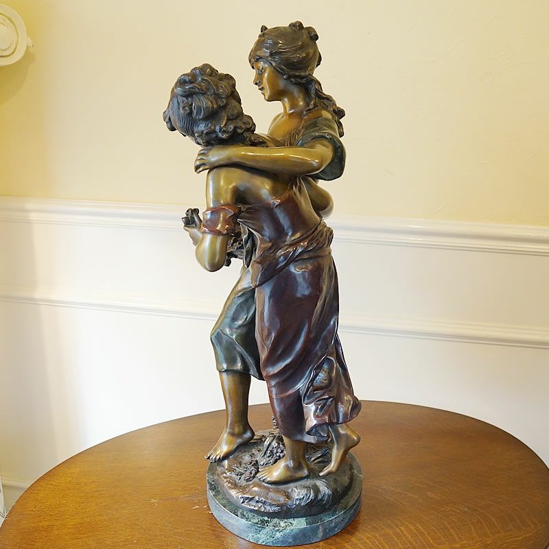 【コメント】フランスのブロンズ像 Auguste Moreau オーギュスト モロー作「ふたりの少女 花摘み」です。下面には、Auguste Moreauとサインが書かれています。オーギュスト・モロー(1834年〜1917年)マルゼルブ、フランスの彫刻家。彫刻家の父の三男です。この作品は、ふたりの少女が、仲良く、楽しそうに花摘みする様を表現したブロンズ像です。