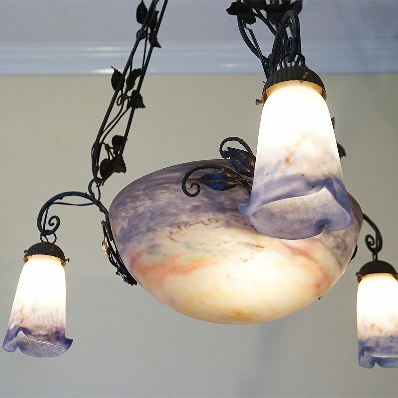 【商品名】ヴィンテージ フランス製 ミューラー兄弟 ペンダントライト アンティーク 4灯【送料無料】ヴィトリフィカシオン彩 ガラス サインあり シャンデリア