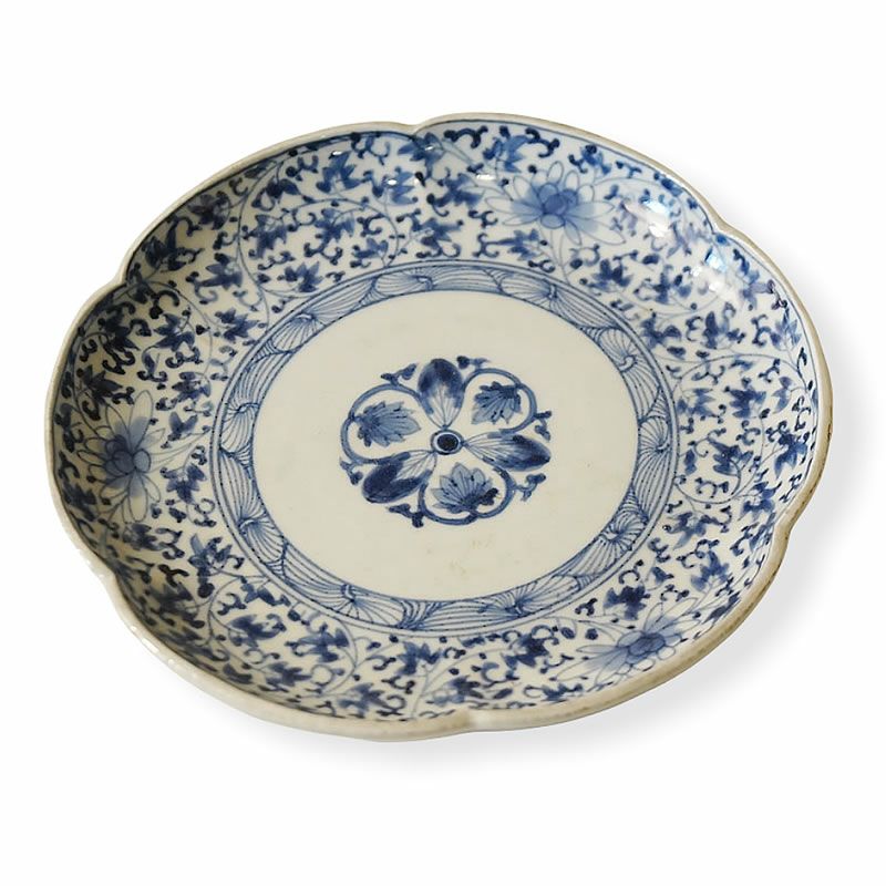 ヴィンテージ雑貨で暮らしを豊かに楽しく!| ヴィンテージ 古伊万里 19cm 丸皿 花唐草文【送料無料】和風 伊万里焼