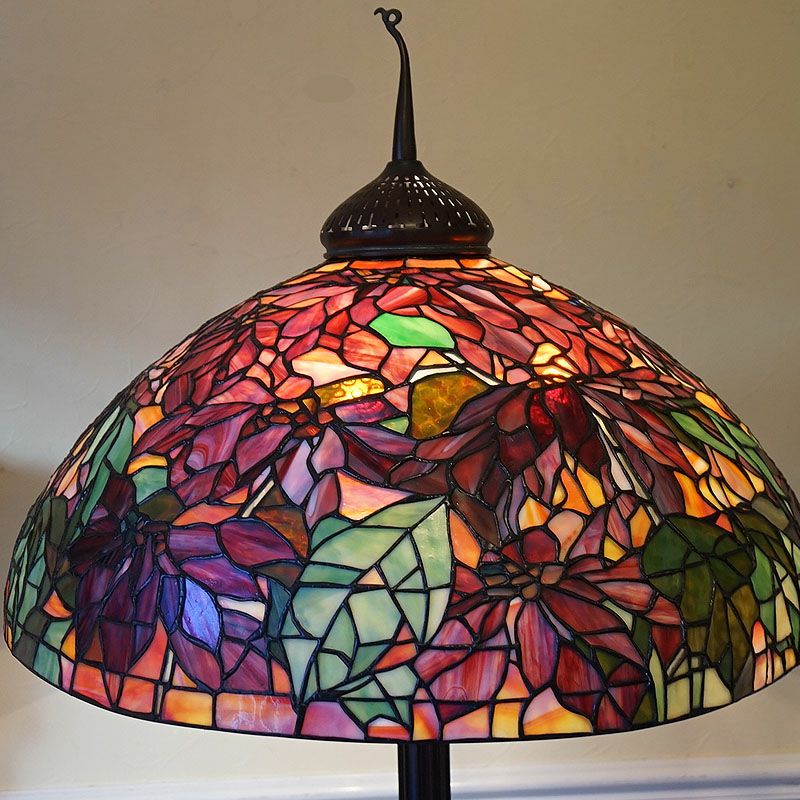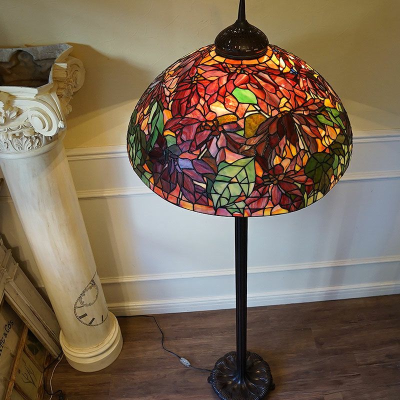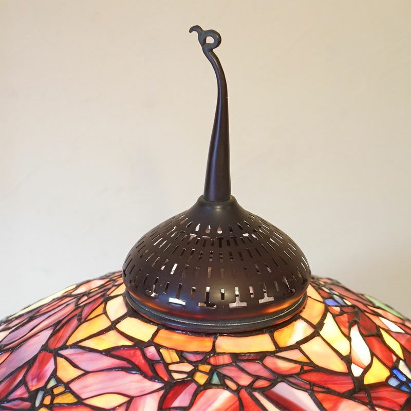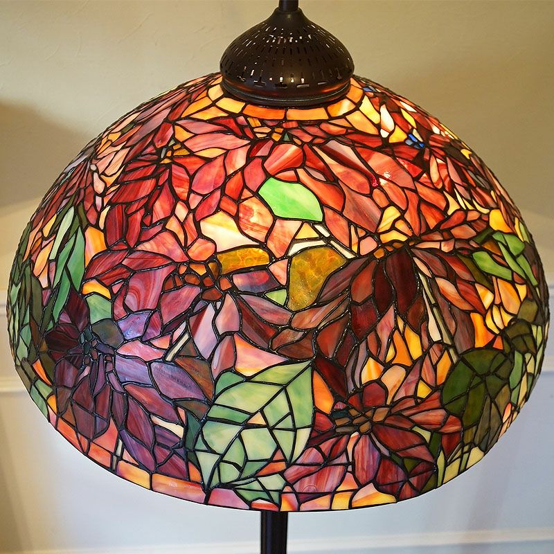 【コメント】ヴィンテージ ティファニースタイルのステンドグラス製のフロアーランプです。あのスティーブ・ジョブズさんが愛した同じタイプのフロアーランプです。このクラスの品質のティファニーランプは入手困難な状況です。ガラスはアメリカ製のティファニーを忠実に再現されたものを使用して制作されています。光を入れると違いがわかると思います。お部屋が華やかで楽しくなるフロアーランプです。ヴィンテージ(USED)をご理解の上、ご購入ください。価値ある逸品です。