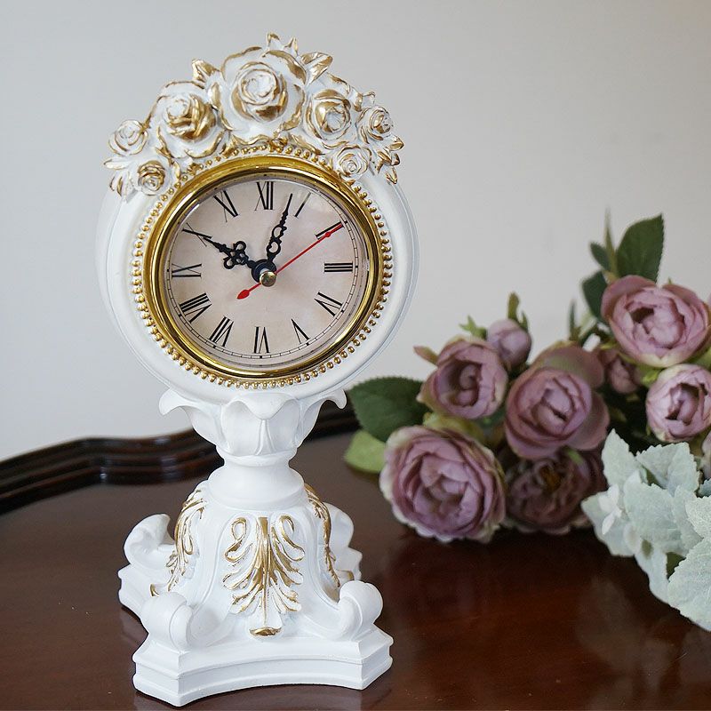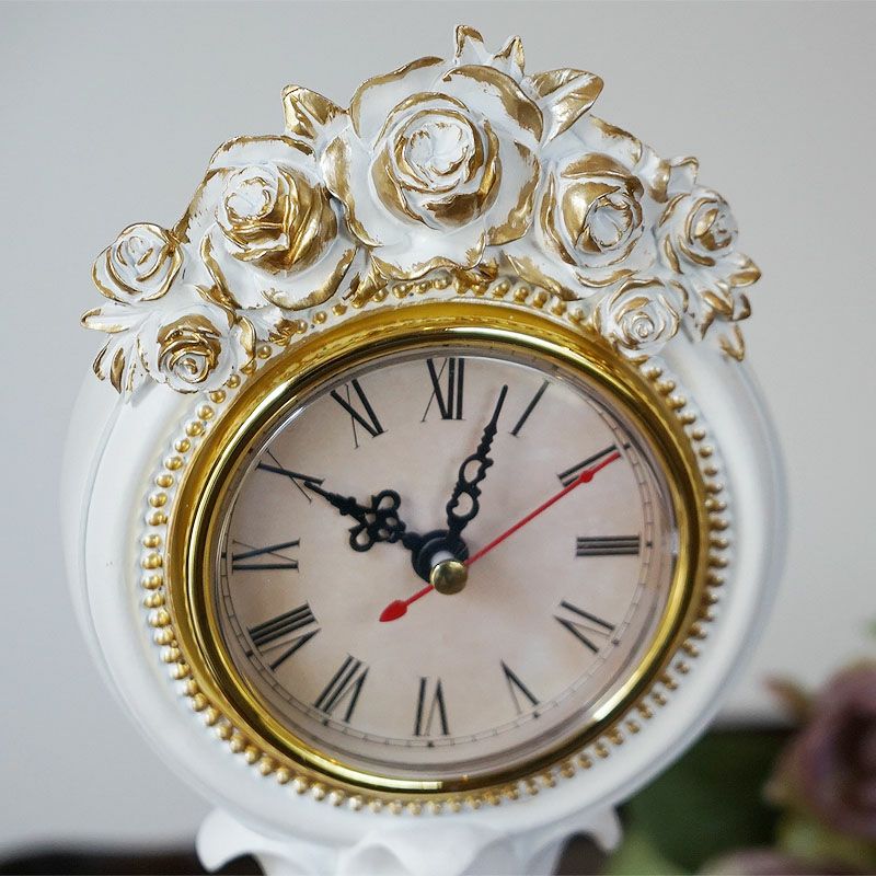 輸入雑貨で暮らしを豊かに楽しく!| 白バラ ゴールド クロック 置き時計 おしゃれ
