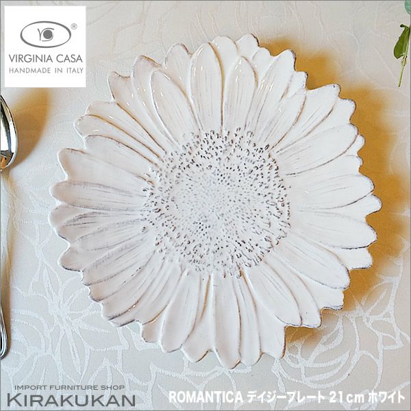 ヴィルジニア社の食器は、生活の愉しみとゆとりを感じさせる食器| ヴィルジニアカーサ ROMANTICA デイジー・マルゲリータ プレート ホワイト 21cm イタリア製 テーブルウェア 食器