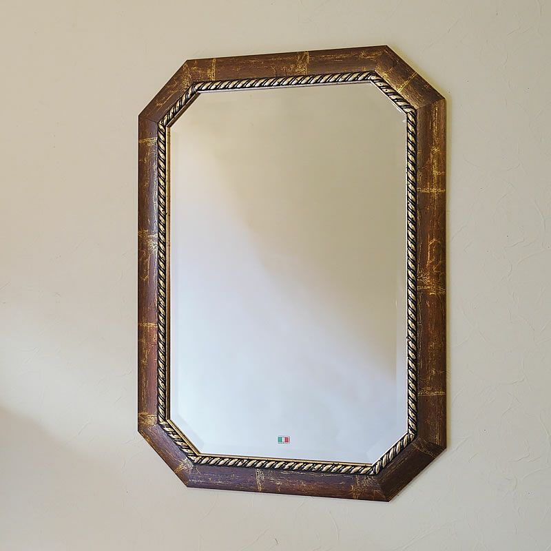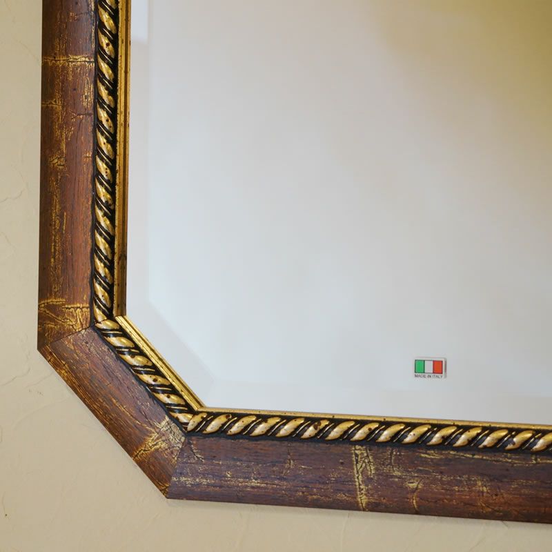 輸入雑貨|ミラー・鏡 シリーズ 「ベストセラー」 イタリア製 八角ミラー 壁掛け アンティーク風 開運 八角形 鏡