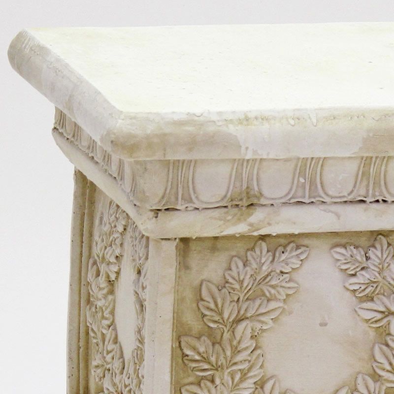 【コメント】エントランスの左右に置きたい、太めのどっしりとしたヨーロピアンコラムです。石の粉と樹脂を混ぜて作っていますので、重量感もありゴージャスな台座になっています。デザインはヨーロピアンテイストで、アンティーク仕上げされた雰囲気も素敵です。