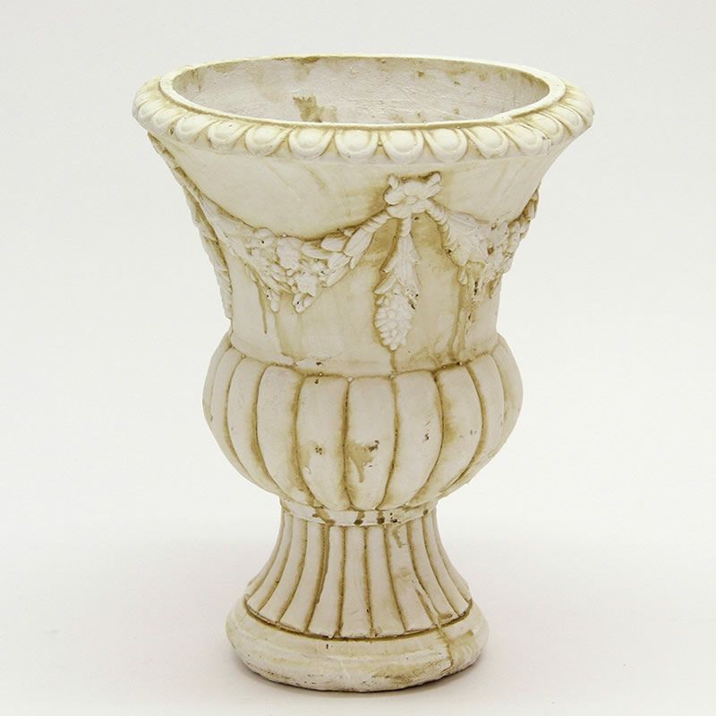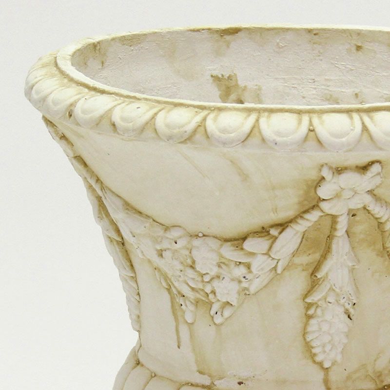 【コメント】エントランスの左右に置きたい風格のある、おしゃれなヨーロピアンプランターです。石の粉と樹脂を混ぜて作っていますので、重量感もありゴージャスな台座になっています。デザインはヨーロピアンテイストで、アンティーク仕上げされた雰囲気も素敵です。※水抜き穴はあいておりません。