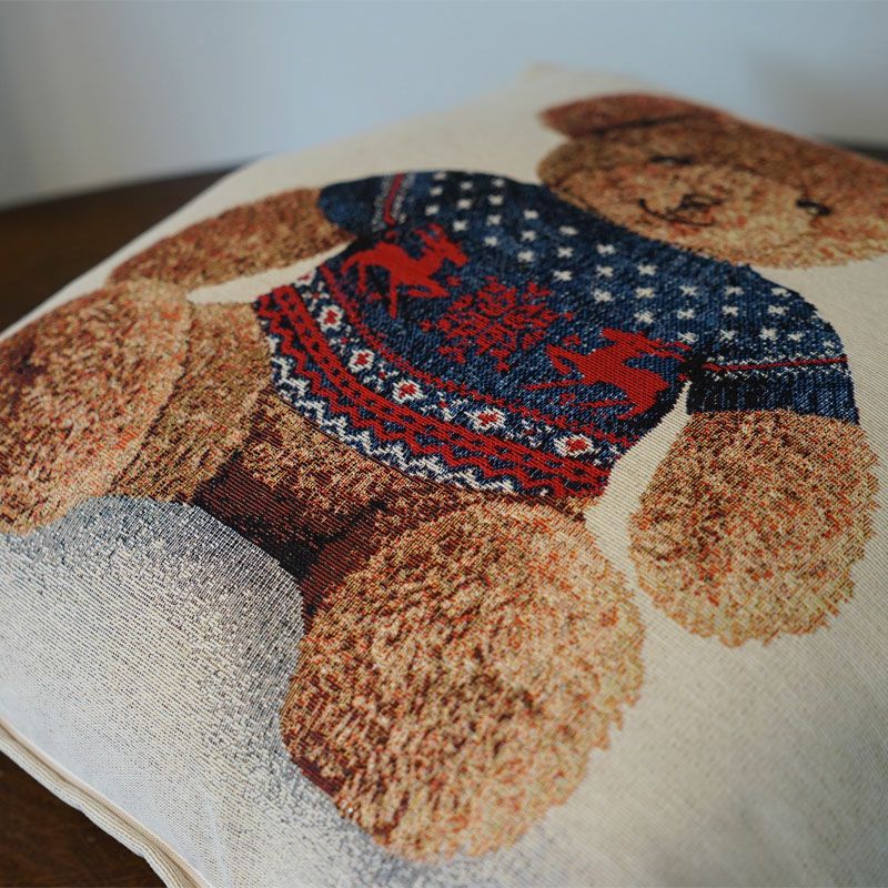 4. クッションカバー 45×45cm おしゃれ ホリディベア ゴブラン織り ポルトガル製 クッション