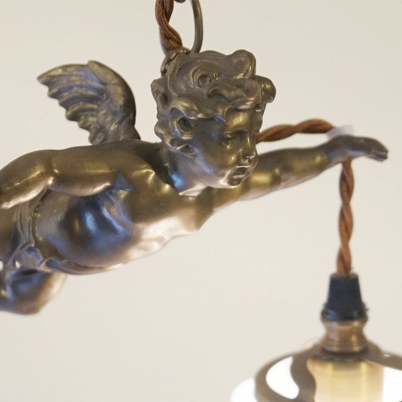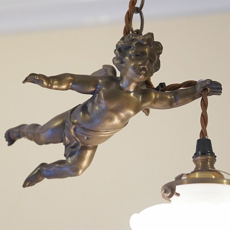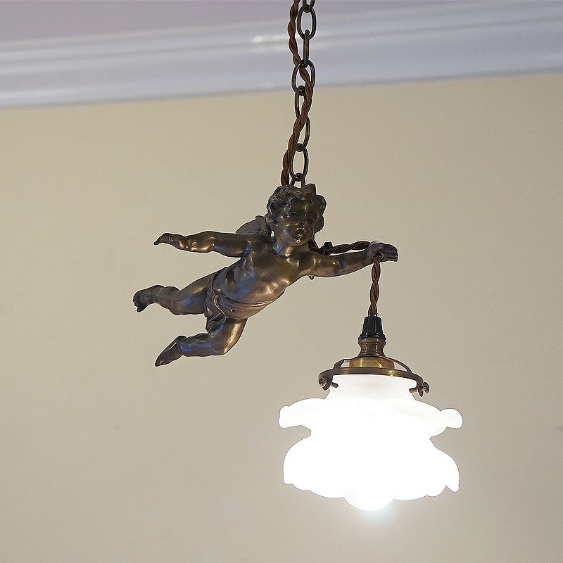 輸入照明で暮らしを豊かに楽しく!| 天使のペンダントランプ & シェードセット アンティーク仕上げ 送料無料