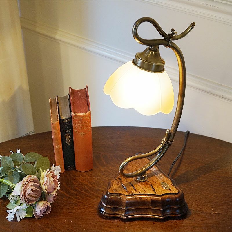 【コメント】風格のある古木の台座に上品な真鍮の本体の輝きが素敵です。古木と真鍮とシェードの質感がちょっと重厚でアンティーク家具とも合います。貴重とされる本物の虫食い古木を使用。200年~300年を経たポプラの古木を使用しています。主に建物の柱や梁に使われていた優れた原料を厳選し、熟練した木工職人の技術により素材を生かして製品化されています。