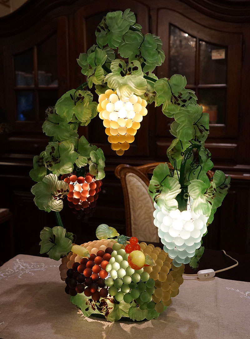 ビンテージ照明で暮らしを豊かに楽しく!| ヴィンテージ イタリア製 ベネチア 葡萄ランプ ブドウランプ 4灯 フルーツバスケット イエロー他 アンティーク テーブルランプ