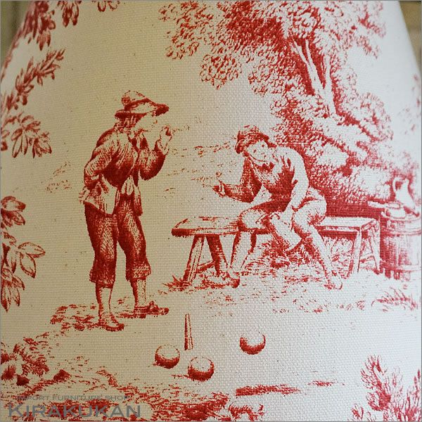 ↑↑この照明器具(ランプ)はトワル・ド・ジュイの生地を使用して作成いたしました。