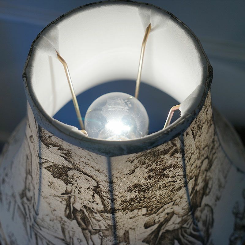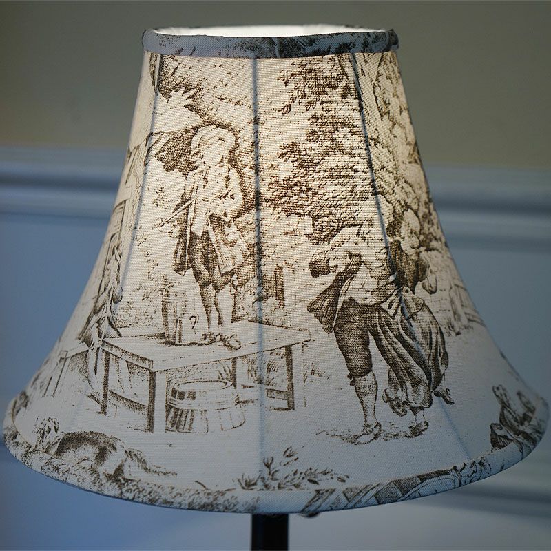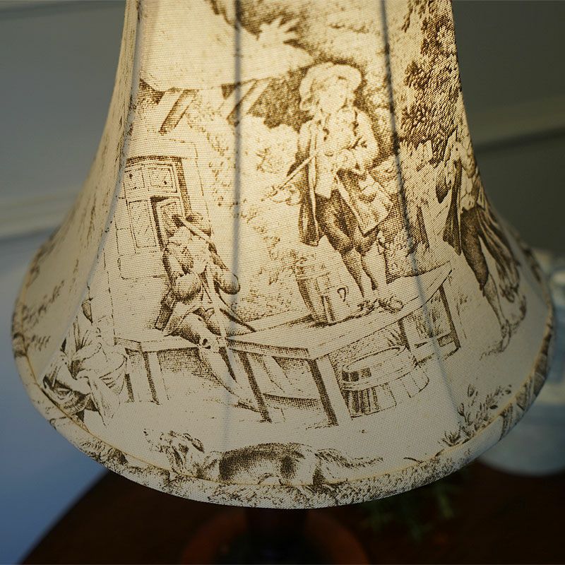↑↑この照明器具(ランプ)はトワル・ド・ジュイの生地を使用して作成いたしました。