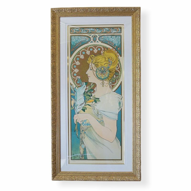 ヴィンテージ雑貨で暮らしを豊かに楽しく!| アルフォンス・ミュシャ画 「羽根ペン」Lサイズ シルクスクリーン 118/300 ポスター Alfons Mucha【送料無料】