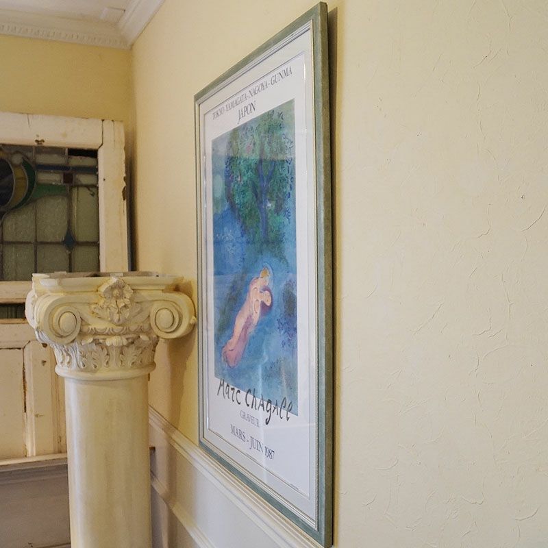 【コメント】1961年製のダフニスとクロエ・フィレータスの教え リトグラフポスターを額装。ダフニスとクロエは世界的にも有名な挿絵本で、最高傑作です。マルク・シャガールは唯一無二の美しい色彩で、浮遊する恋人たちや、サーカス、宗教などをテーマに独自の画風を確立した。