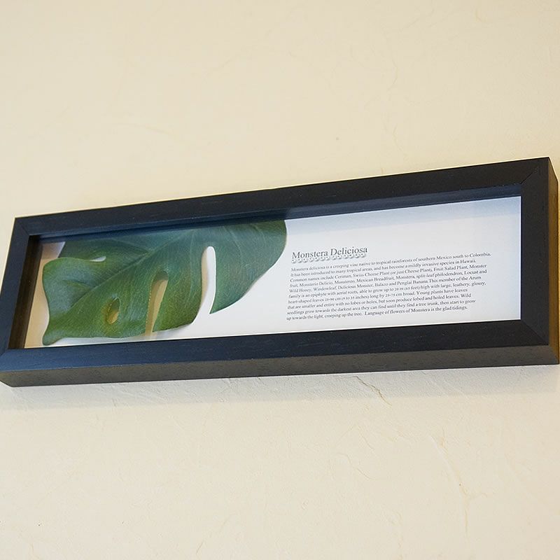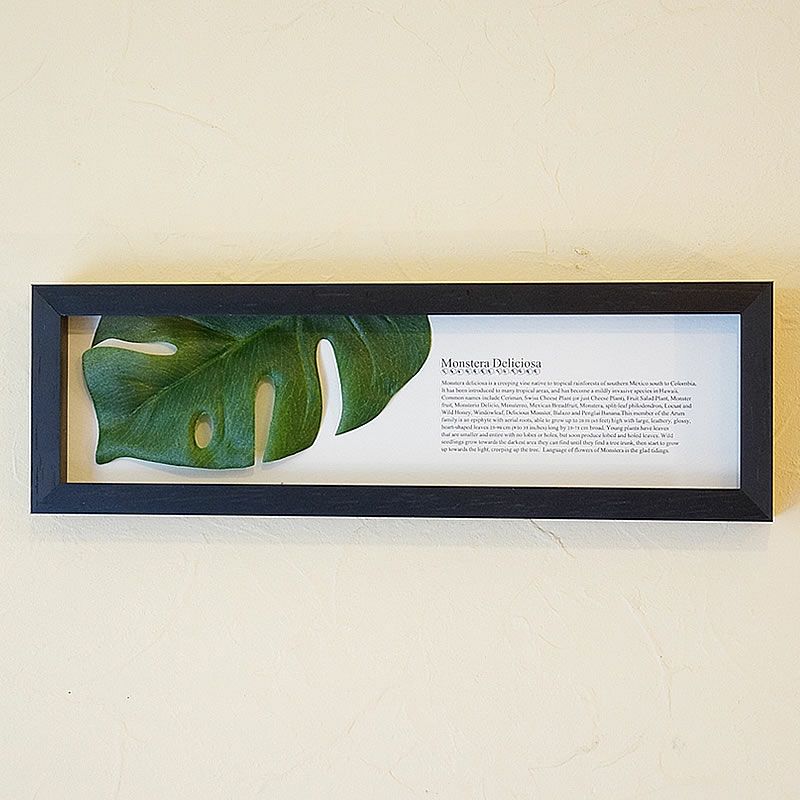 【コメント】リーフフレームと呼ばれている植物の葉を題材に作られた飾り額、壁面に飾ると、見ていて癒やされているのがわかります。目に優しい緑色の景色・イメージ。お部屋に飾るとその場が、優しくなり、楽しい雰囲気になります。新築祝い・リフォーム祝・母の日のプレゼント・ギフトに喜ばれております。木楽館では、モンステラシリーズをおすすめしています。