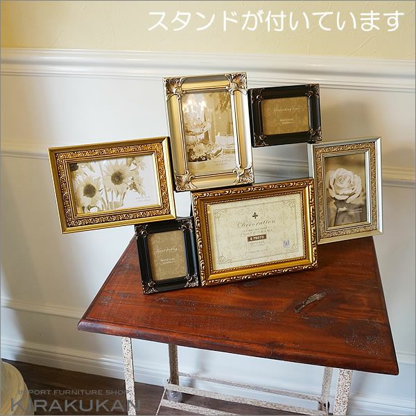 輸入雑貨で暮らしを豊かに楽しく!| フォトフレーム 写真立て シャビーフォトフレーム Lサイズ 鏡枠 壁掛け可 メール便使用 卓上 写真立て