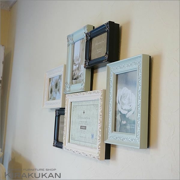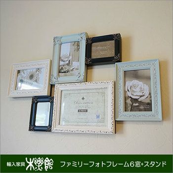 輸入雑貨|フォトフレーム 写真立て ファミリー 6窓 フォトフレーム(写真立て)スタンド付き:バニラミックス色