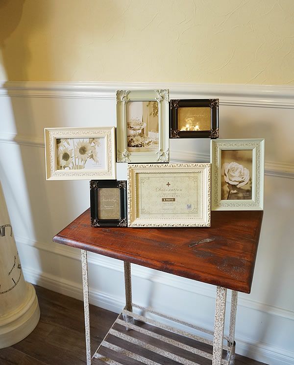 【コメント】アンティークスタイルの各種フレーム(枠)が集合したフォトフレームです。6つの窓がありますので、家族や風景など、まとめて収納できます。スタンドが付いていますので、卓上タイプとしてもご使用いただけます。古くて新しい・・・そんな不思議感覚のアイテムです。プレゼントにピッタリです。