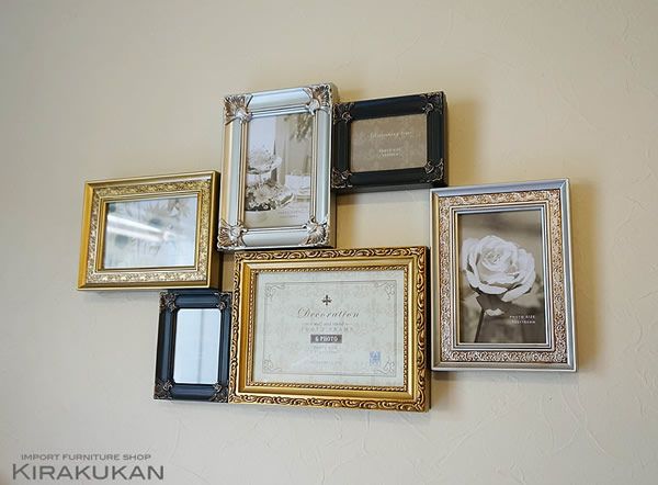 輸入雑貨|フォトフレーム 写真立て ファミリー 6窓 フォトフレーム(写真立て)スタンド付きゴールドミックス色