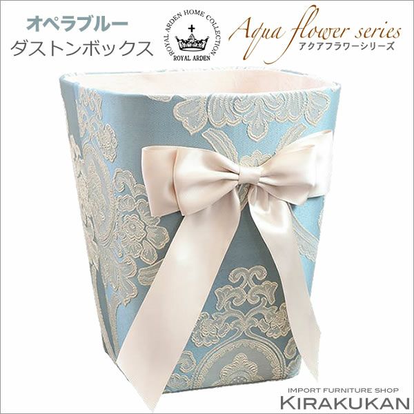 輸入雑貨|ロイヤルアーデン・アクアフラワーシリーズ アクアフラワー オペラブルー:ダストボックス ゴミ箱 スクエア小物入れ リボン ごみ箱 ジェニファーテイラー風 ボックス