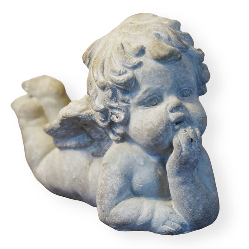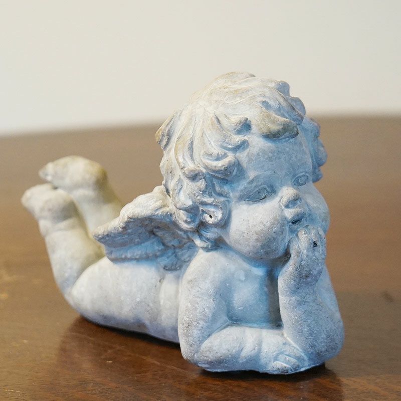 【コメント】コベントガーデンのガーデンエンジェル 天使の置物です。ホワイトコンクリート製のアンティークに仕上げられた置物で、エントランスやガーデンに置いて飾ると素敵です。