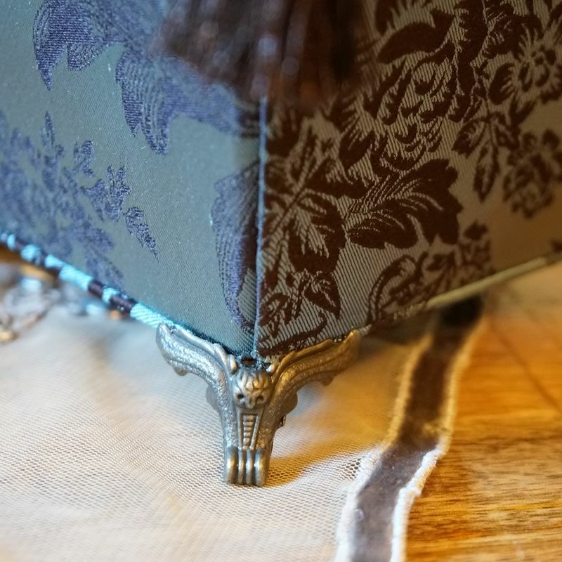 【コメント】ジェニファーテイラーの人気シリーズ「カーライルCarlisleシリーズ」にダストボックスの弟分ができました!2廻り小さくなって、おしゃれな脚がつきました。どこにでも置けるサイズで、内部はもちろんビニール加工してありますので、安心です!寝室まわりからリビングのアクセントにピッタリのエレガントなアイテム。