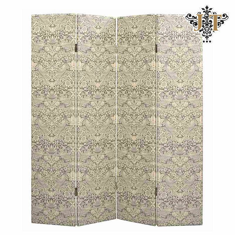 4. ジェニファーテイラー スクリーン 4連 布 いちご泥棒柄【送料無料】ピュアモリス風 モリス Morris 衝立4連