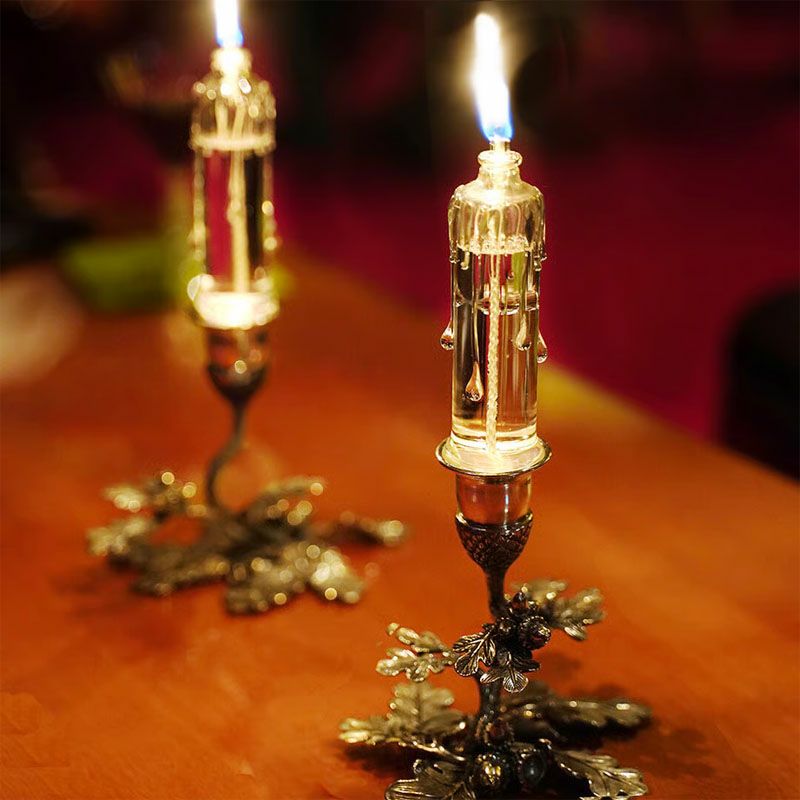 オークの枝にどんぐりやオークリーフを配置したキャンドルスタンド