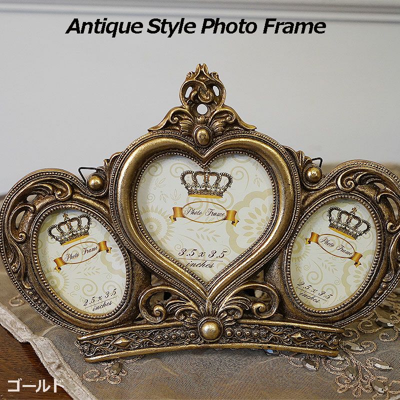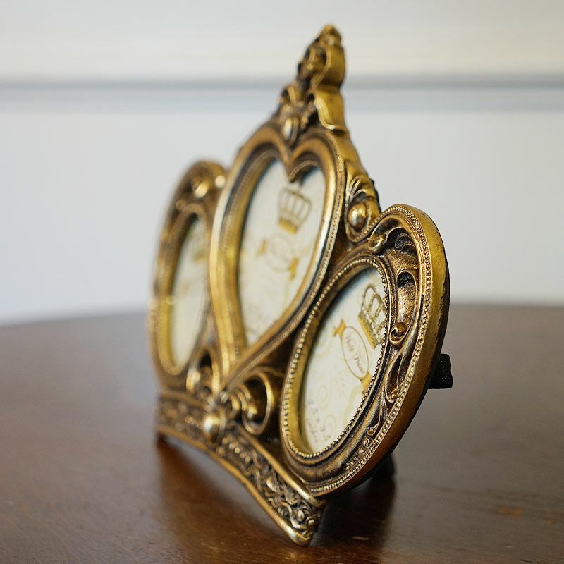 4. フォトフレーム 壁掛け可 3窓 ゴールド 写真立て フォトフレーム おしゃれ アンティーク雑貨 インテリア雑貨
