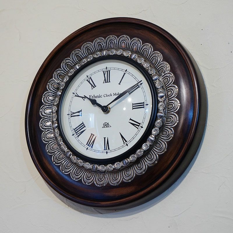 【コメント】存在感のあるブラウンのフレームにホワイトの文字盤と周りにシルバークラシック柄を施しているのがオシャレな掛け時計・・・プレゼントにもピッタリのおすすめアイテムです。単三電池使用の機械がクォーツなので、遅れることもなく、使いやすい時計です。