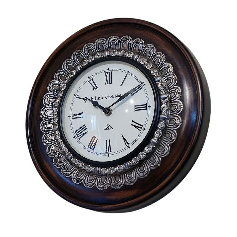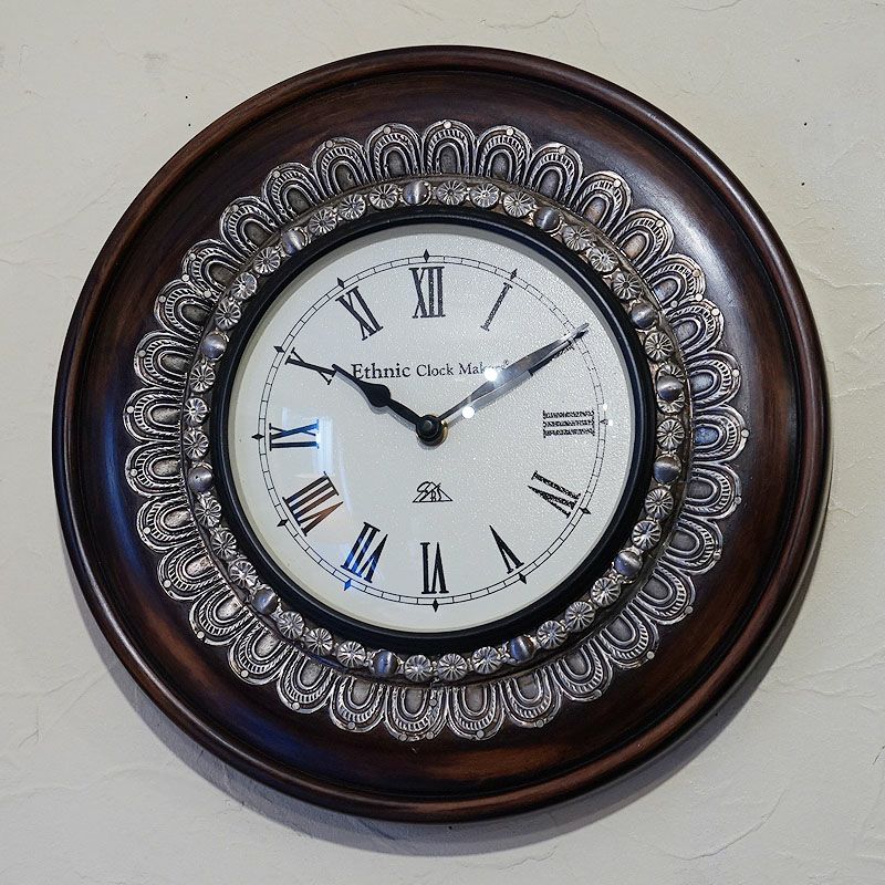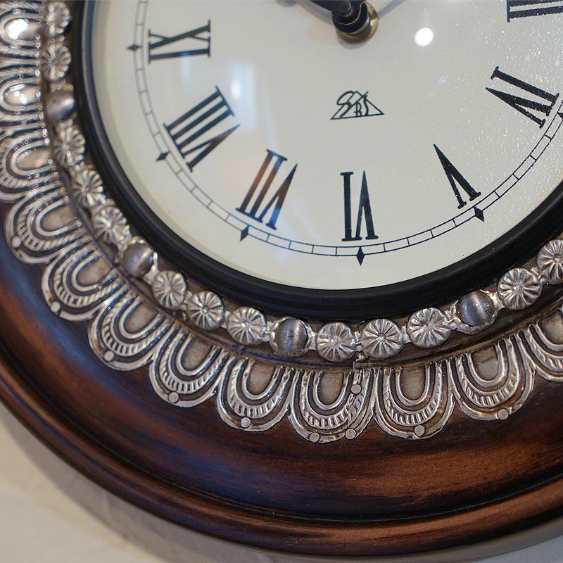4. アンティーク風 掛け時計 クォーツ ブラウン&シルバー おしゃれ時計 クォーツ