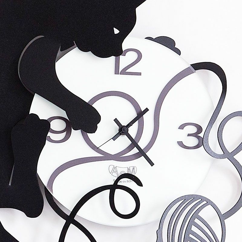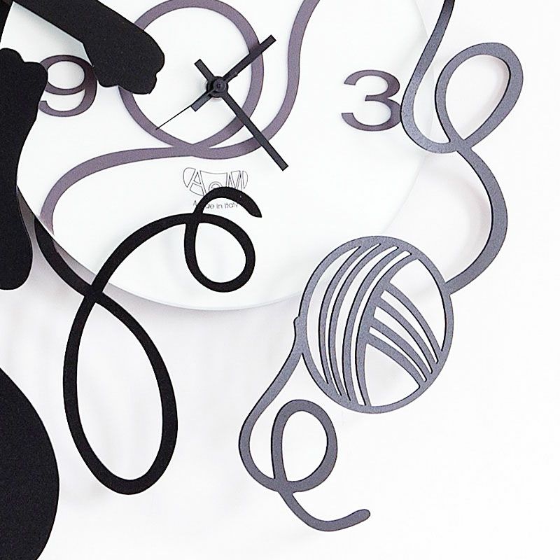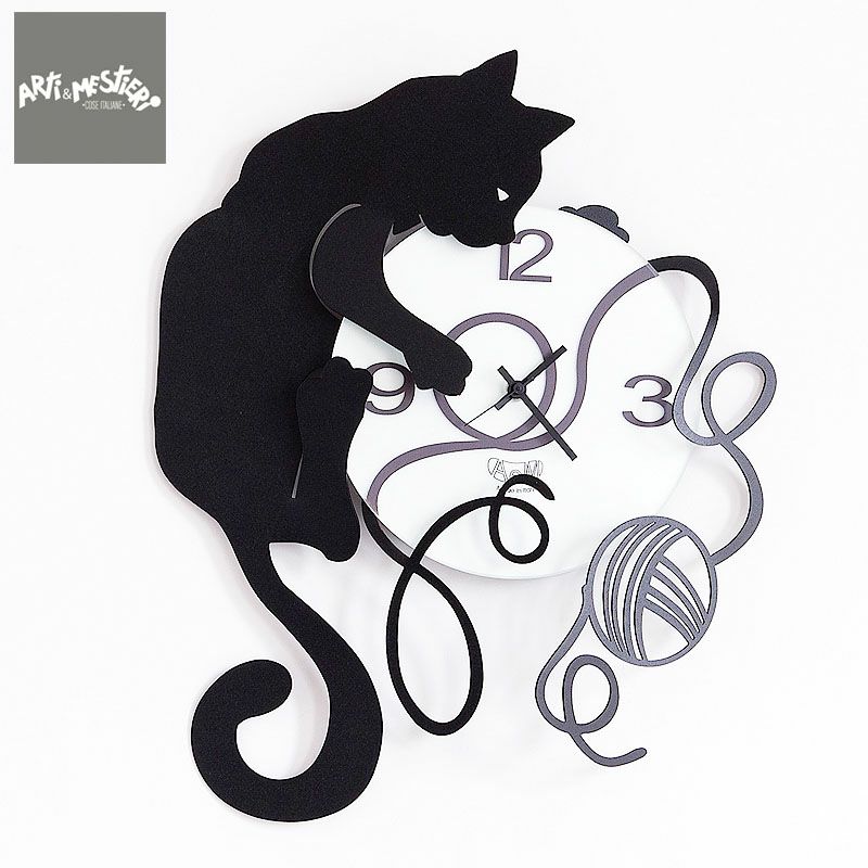 アルティ・エ・メスティエリ とてもお洒落なイタリア時計| Arti e Mestieri アルティ・エ・メスティエリ 掛け時計 Gatto Gomitolo ブラック イタリア製 アルティ エ メスティエリ 時計