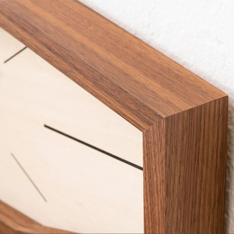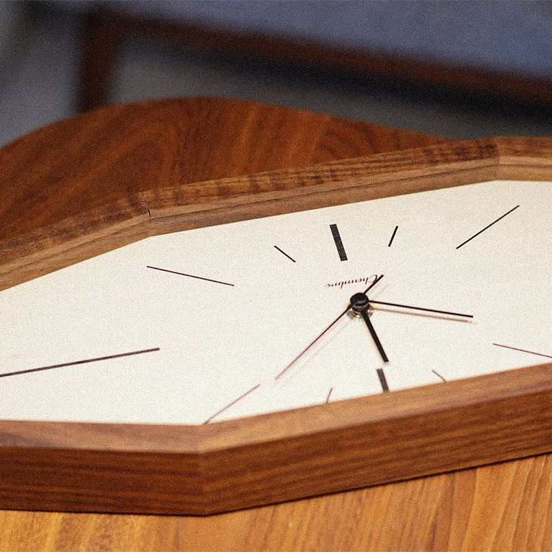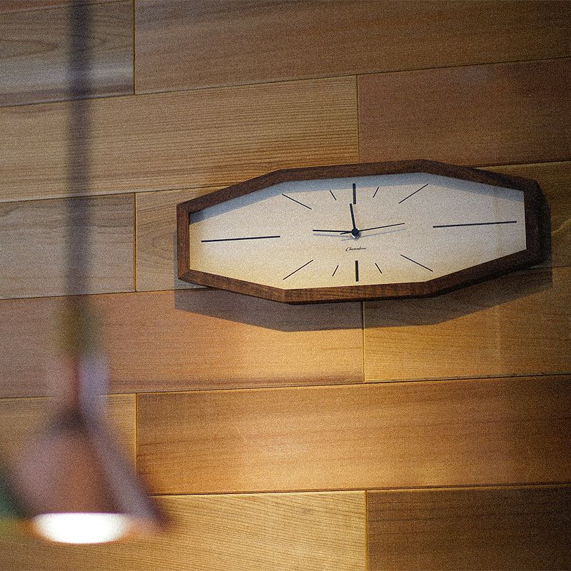 8つの直線を組み合わせた木枠だけでなく、短針・長針・秒針に至るまで全てシンプルな直線のみで表現しています。