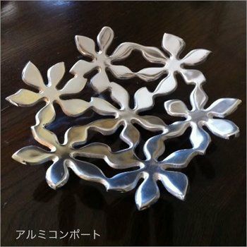 【コメント】お花が7輪集まったデザインのアルミ製コンポート、テーブルの上が華やかになりますね。果物などをのせてください☆