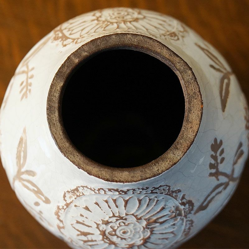 4. フラワーベース 陶器 花瓶 陶器製 ホワイト WH 【 送料無料 】 インテリア 雑貨 アンティーク