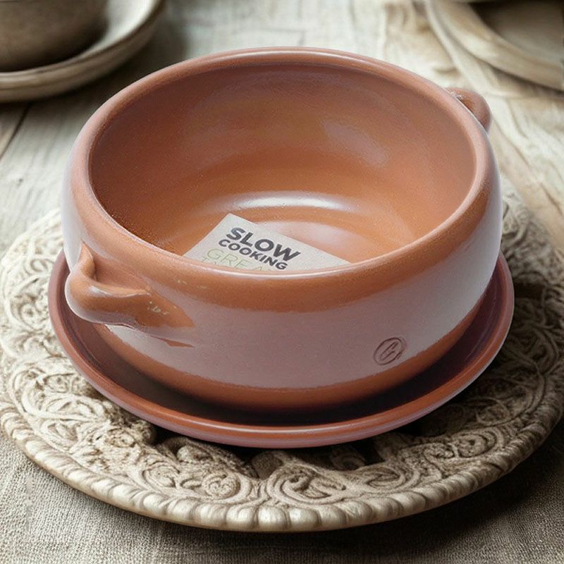 5. スペイン グラウペラ社製 両手深鍋 アヒージョ鍋 13cm + 平皿 14cm セット テラコッタ陶器 カスエラ