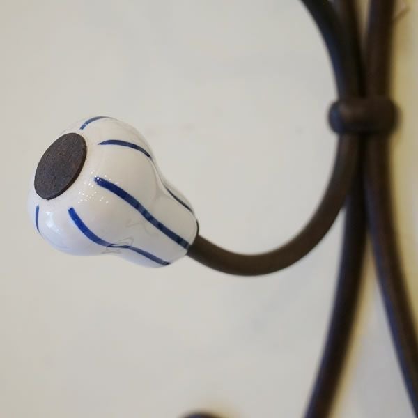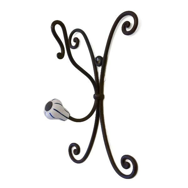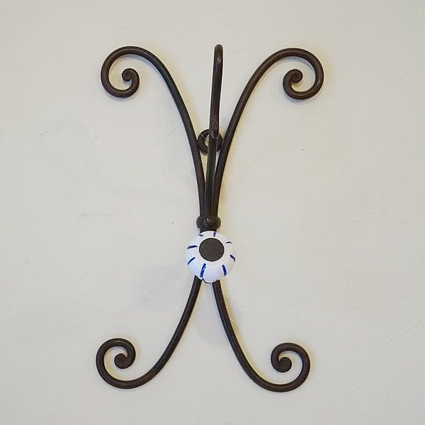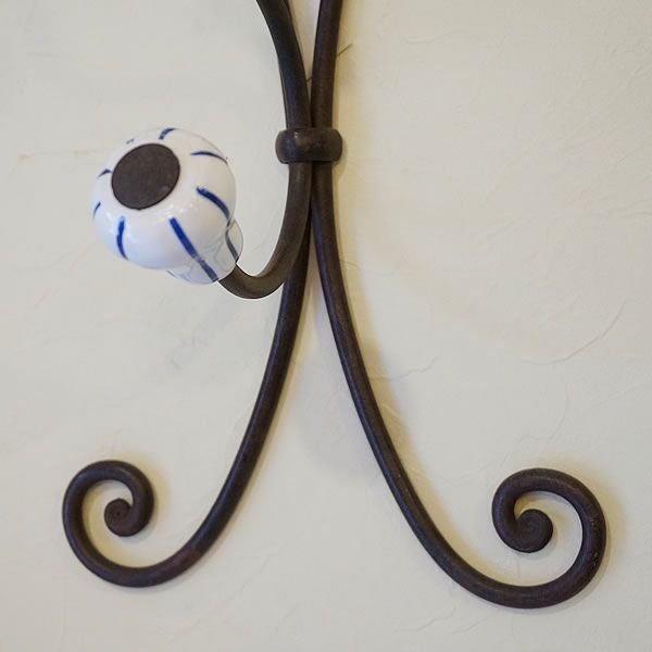 【コメント】ハンドメイドで作っれたコートハンガーです。ロートアイアンの素材とアンティークに仕上げられたテイストが重厚な存在感があります。ハンガーのトップは陶器で出来ています。
