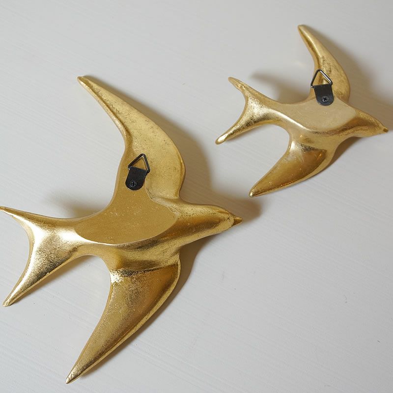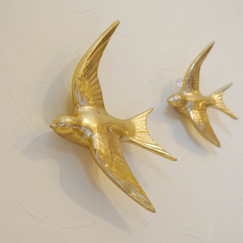 輸入雑貨・おしゃれ壁掛けレリーフシリーズ| ウォールデコ ゴールド バードS&L 2点セット 壁掛け おしゃれ 雑貨 金色