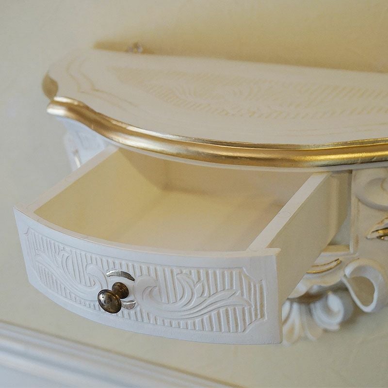輸入雑貨で暮らしを豊かに楽しく!| 壁掛け コンソール 引出し付 ホワイト&ゴールド イタリア製 イサス ユーロマルキ EURO MARCHI イタリア雑貨