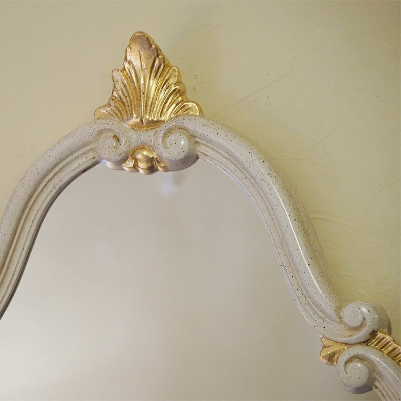【コメント】イタリア製のエレガントなホワイト&ゴールド仕上げのミラーです。優雅なスタイル、フレームのゴールドが素敵なインテリア空間を演出します。※コチラの商品は大きめのサイズになるため、他の商品との同梱が困難となるため同梱不可とさせていただきます。