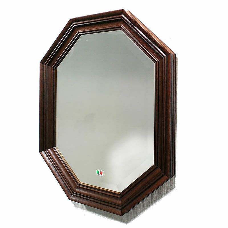 【コメント】・開運で話題の八角ミラー、数あるイタリア製のミラーから選びました。お手ごろ価格で、使いやすい大きさ・サイズ、シンプルなウオールナット仕上げで、一番スタンダードな枠のミラーです。インテリアの好きな方にとっては、手に入れておきたい一枚ですね? スタンダードは飽きませんし、飾る場所も選びません。塗り壁・クロス紙・土壁・等OKです。※こちらの商品はアンティーク仕上げのため、敢えて塗装剥げや汚しを出しております。不良品ではございませんので何卒ご理解の上お買い求めください。