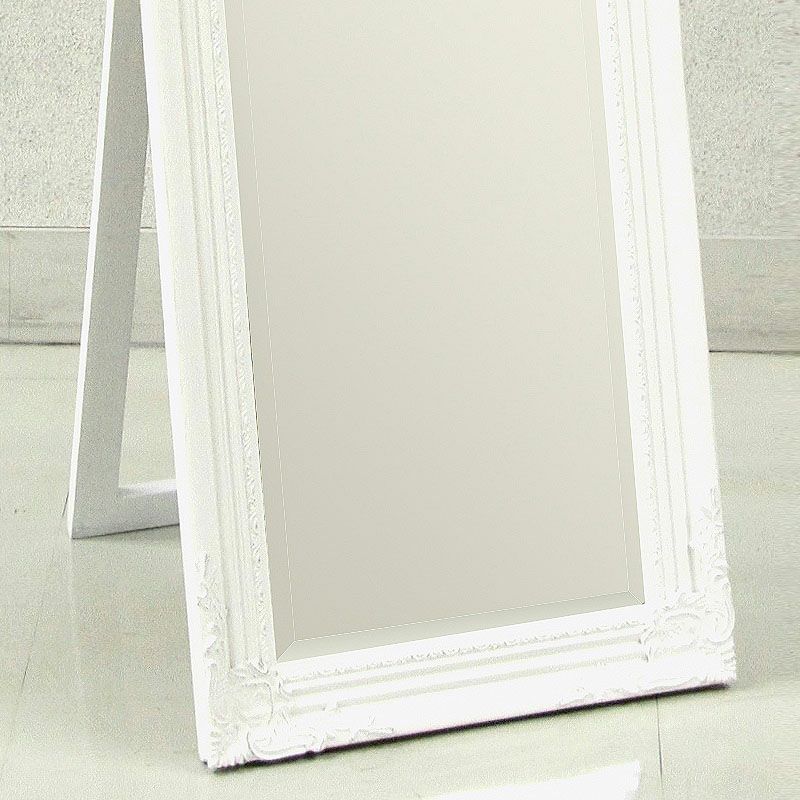 輸入雑貨で暮らしを豊かに楽しく!| スタンドミラー アンティーク スタンドミラー 全身 ホワイト 鏡 面取り 立てかけ 姿見 鏡