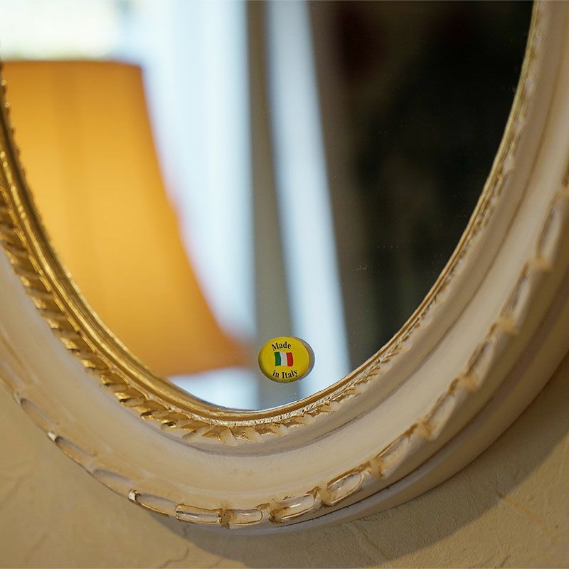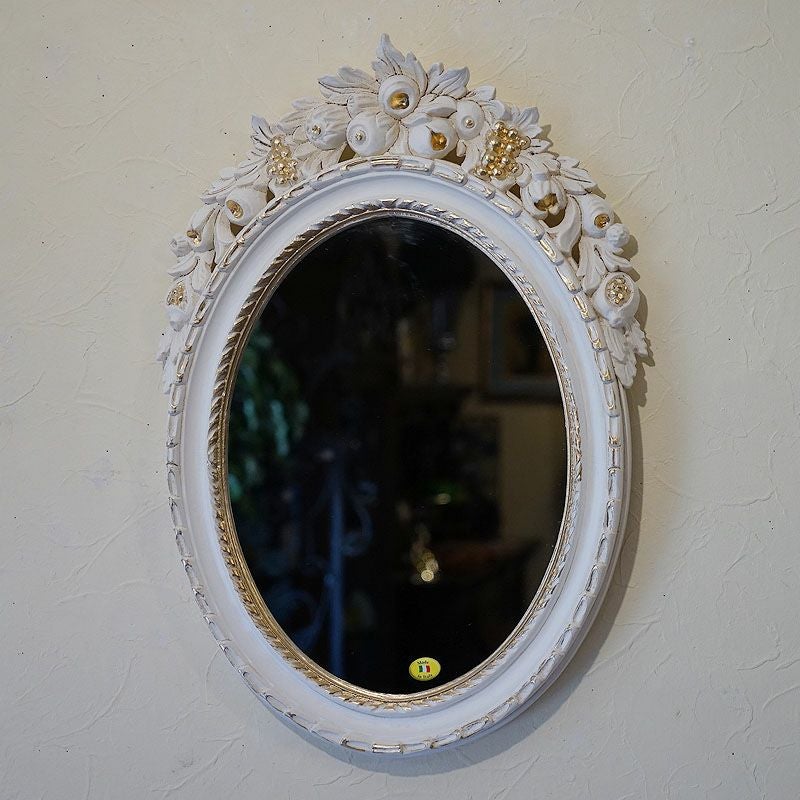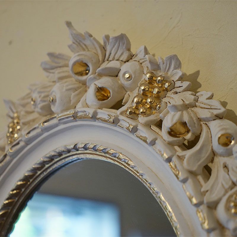輸入雑貨で暮らしを豊かに楽しく!| 鏡 壁掛け アンティーク イタリア製 壁掛けミラー 鏡 Mirror アイボリー色 鏡 ロココ