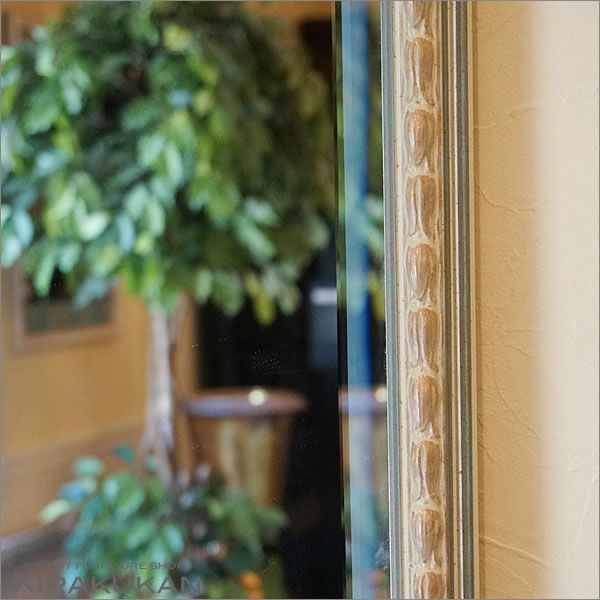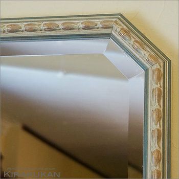 白い壁に 猫のいたずらで壁紙が剥がれてしまったので それを隠すために壁掛けミラーを購入しました。 イタリア製のキャビネットの並びなので、くどくならない様に 落ち着いたデザインの物を選びました。 期待通りの上品な鏡で、雰囲気もピッタリ! 写真で見るよりも素敵ですね。