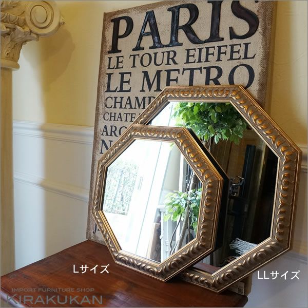 【コメント】運気が良いとされる八角形は人気のデザイン。アンティークカラーに塗装された枠は、お部屋の雰囲気をアップさせるアイテムです。リアル店舗でも販売しておりますので、在庫が切れている場合もございますのでご了承ください。詳しくはご注文後、確認の上メールにてご連絡させていただきます。