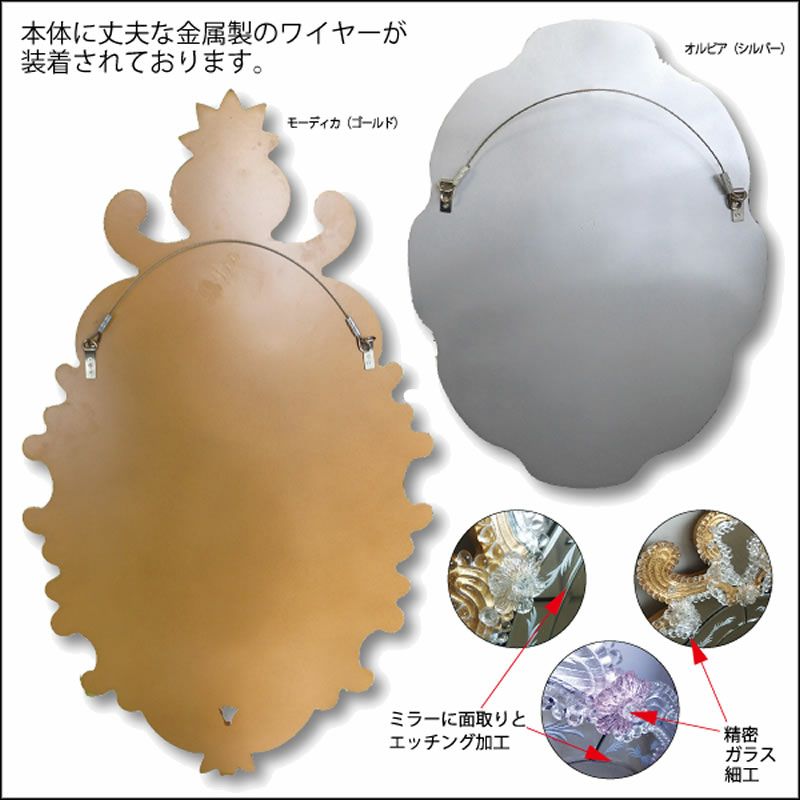 【商品名】ベネチアンスタイルミラー・ムラーノ【エッチングミラー オーバル:モーディカ・ゴールド】イタリア ベネチアミラー 鏡 壁掛け