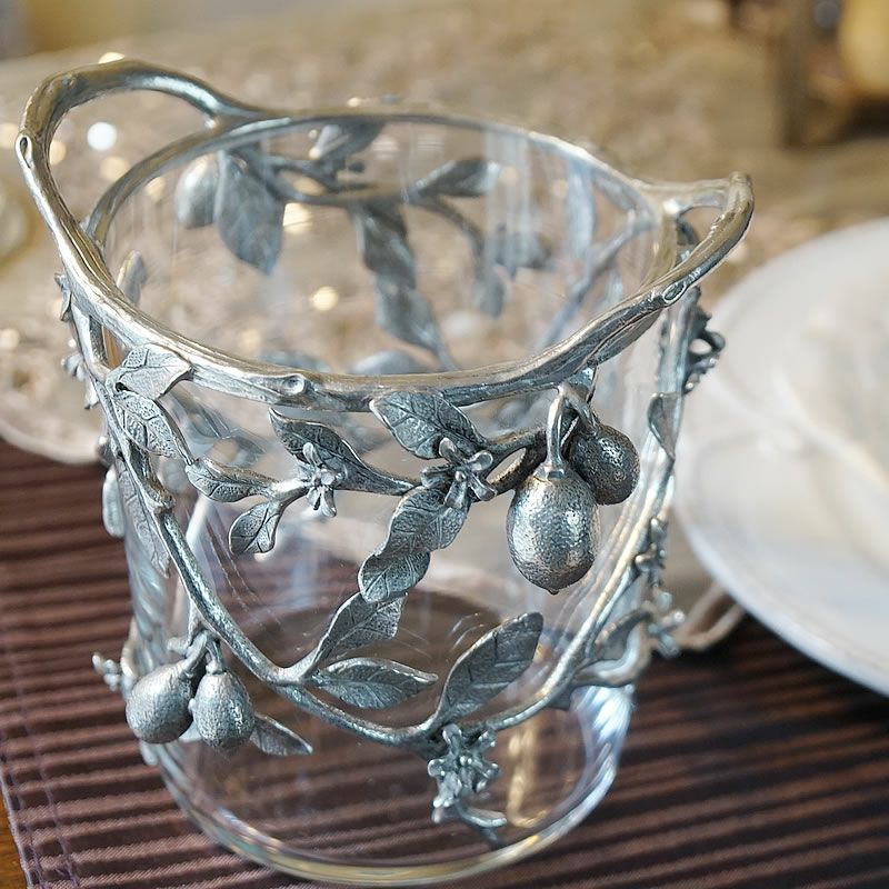 【商品名】テーブルウェア AJ ピューター製 アイスバスケット レモン柄【送料無料】ワインクーラー ガラス&ピューター 錫 スズ