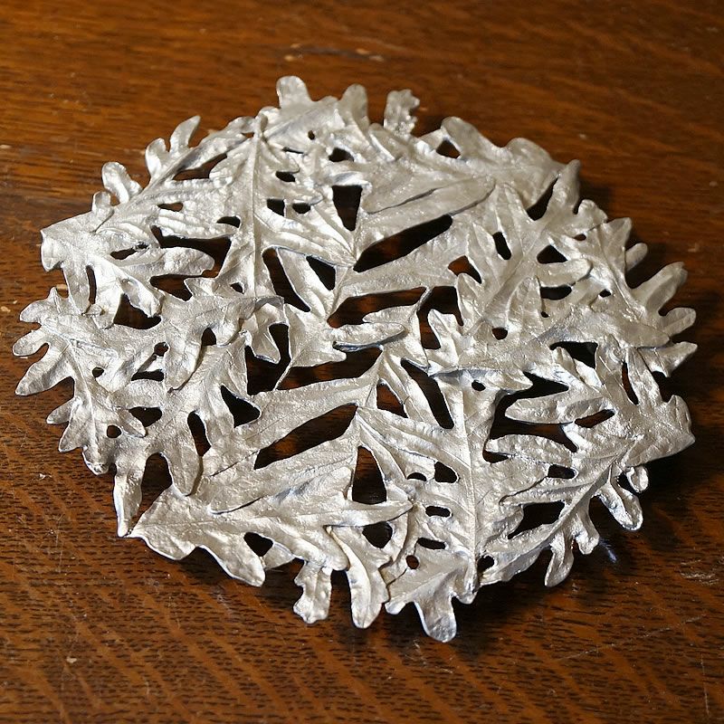 4. テーブルウェア AJ ピューター製 ポットスタンド オークリーフ
